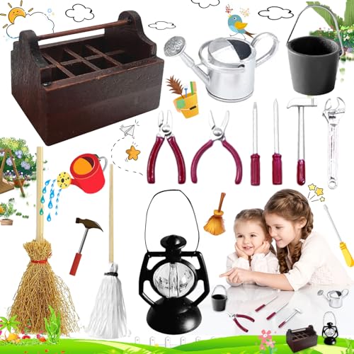 12 Pièces Boîte à Outils pour Maison de Poupée, Miniature Ma...