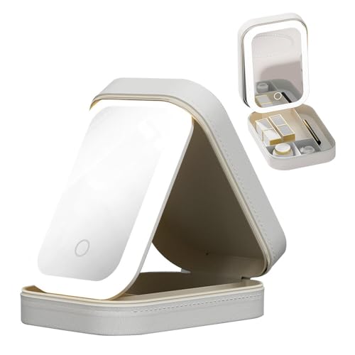 KUWUNG Miroir cosmétique LED Multifonctions, Boîte de Rangem...