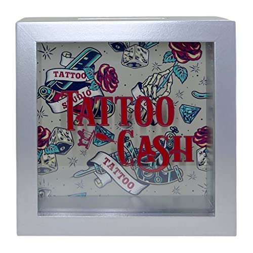 Tirelire Tattoo Boîtier Blanc avec Fenêtre et Motifs Colorés