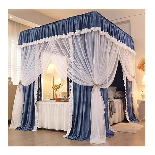 Moustiquaire à baldaquin de lit Bleue avec Bord Volant, Ride...