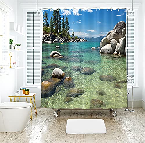 Vgzsyomqib Plage Océan Rideau de Douche 3D Jardin Bord Mer F...