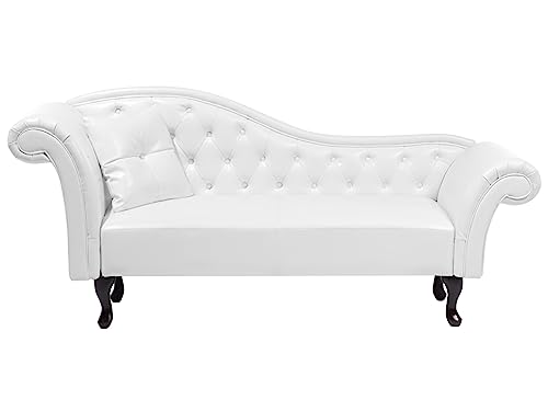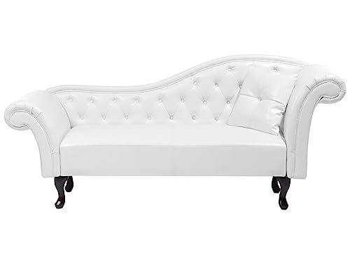 Chef Longue Meridienne Chesterfield Côté Droit Cuir PU Blanc