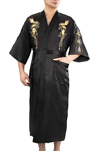 Bon amixyl Peignoir de bain pour homme en satin de soie Kimo...