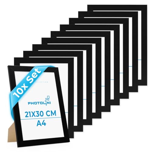 PHOTOLINI Cadre photo A4 21 x 30 cm bois MDF noir, cadre lar...