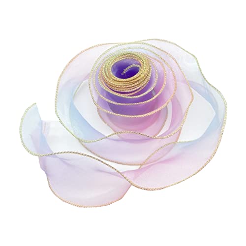 generisch 5yard 50mm Or Filaire Vague Bord Soie Arc-en-Ciel...