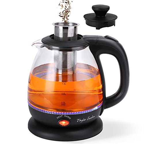 Bouilloire eau et thé en verre et inox, Capacité 1,7L d''eau...