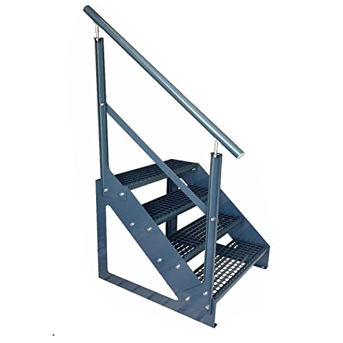 Premium Caillebotis acier Escalier à limon 4 Marches Autopor...