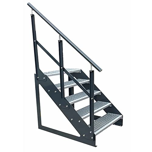 Premium Caillebotis acier Escalier à limon 5 Marches Autopor...