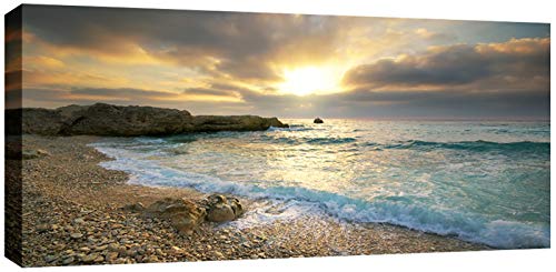 Grande toile prête à accrocher Paysage plage avec galets et...