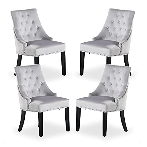 Interiors Lot de 6 Chaises Capitonnées Velours Gris Foncé