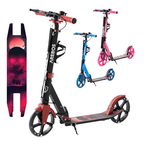 Arebos LED Trotinette Pliable Hauteur Frein Main Pied Transp...