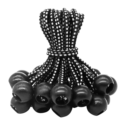 Lot de 25 tendeurs en caoutchouc avec boule (noir et blanc 1...