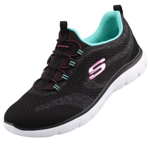 Skechers Femme SUMMITS Tricot Noir Bouclier Turquoise