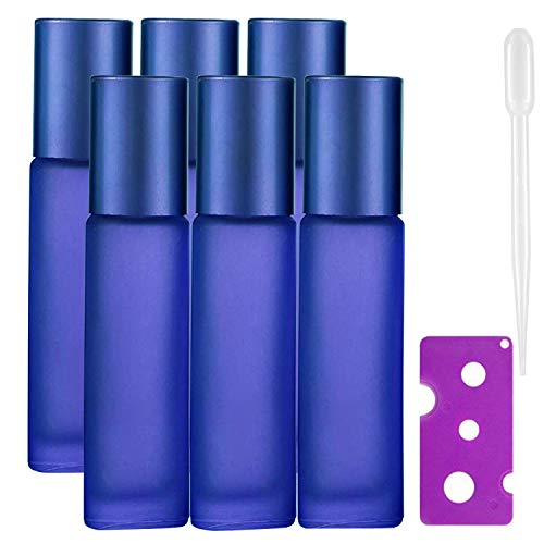 Alledomain Lot 6 flacons roll-on rechargeables verre bleu, 1...