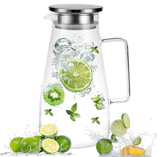 Carafe Eau 2L Verre Inox Acier Couvercle