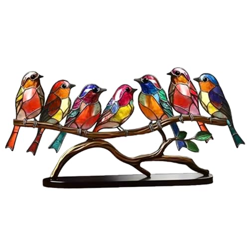 Béhings vitrail 7 oiseaux sur branche, ornements vifs