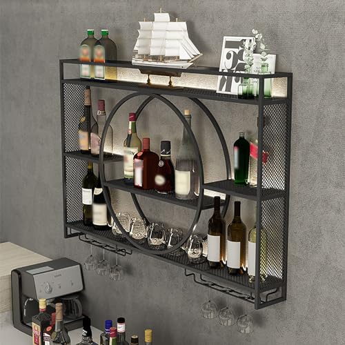 Étagère Vin LED Murale, Porte-Bouteille Flottante Verre, Ran...
