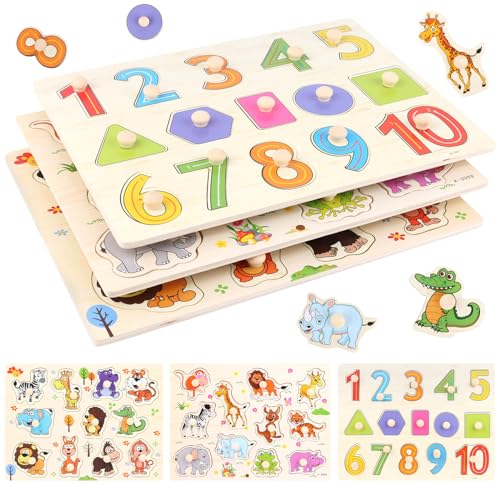 Puzzle géométrique Montessori, bouton en bois, jeu éducatif...