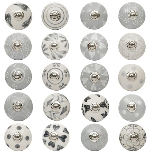 Lot de 10 boutons de porte céramique gris et blanc shabby ch...