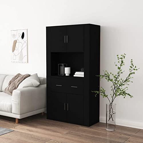 ShCuShan Buffet Haut Noir 70x31x115 cm Bois d''ingénierie,Bu...