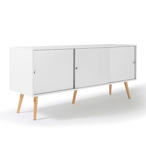 Muebles Bonitos Buffet Salon Bas 3 Portes Blanc Finition
