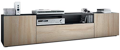 Planetmöbel - Meuble TV - Noir - 200 cm - Meuble TV avec 2 r...