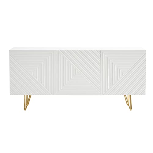Sweiko Commode - Buffet blanc doré avec portes et tiroirs