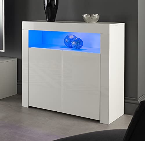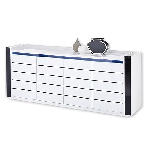VSOGA Buffet blanc brillant, 16 couleurs LED, salle à manger...