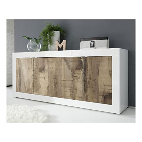 Enfilade 4 portes contemporaine finition laqué blanc + planc...