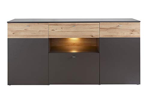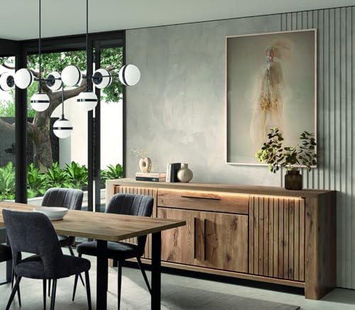 Meuble Buffet 3 Portes Blanc Laqué Chêne Nature LED Design C...