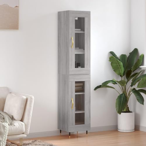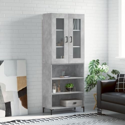 KIPPOT Armoire de salon moderne - Buffet haut élégant - Gris...
