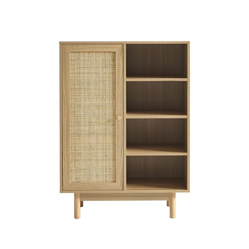 Buffet Helena Effet chêne et cannage rotin 1 Porte 80cm