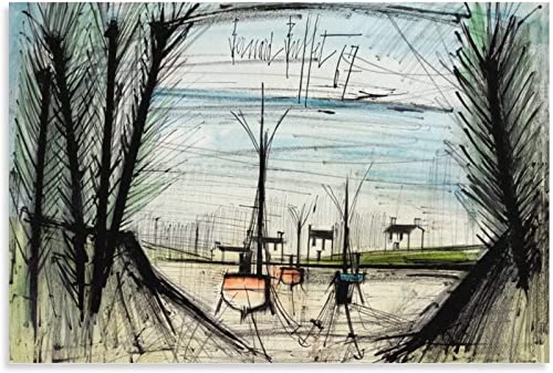 XCPORA Bernard Buffet Poster《BARQUES À MARéE Basse》Art Mur...