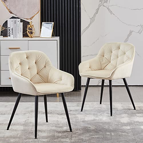Lot de 2 Chaises Rembourrées Velours Salon et Bureau Beige