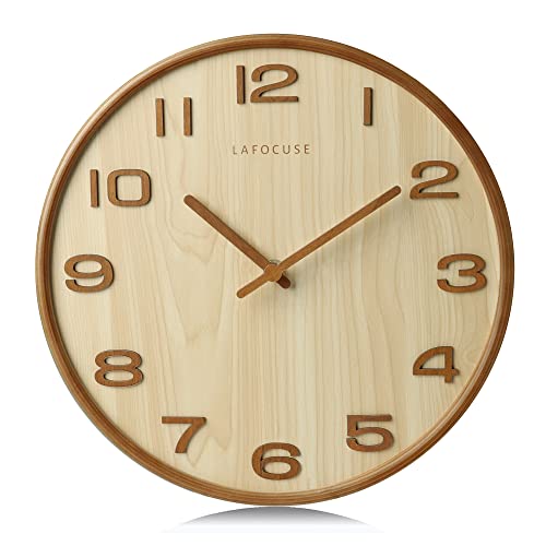 Lafocuse Horloge Murale Vintage Bois Beige, Silencieuse Pend...