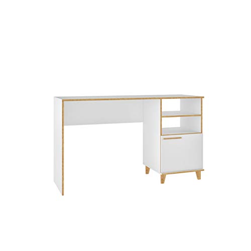Bureau linéaire Dmora, étagère, bureau PC, blanc brillant ér...
