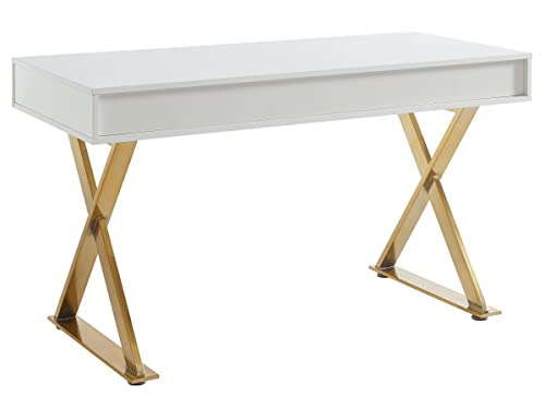 Un Bureau MDF laqué, 2 tiroirs, Blanc et doré