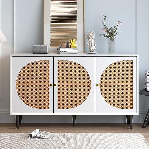 KecDuey Buffet haut avec 3 portes décorées en rotin avec poi...