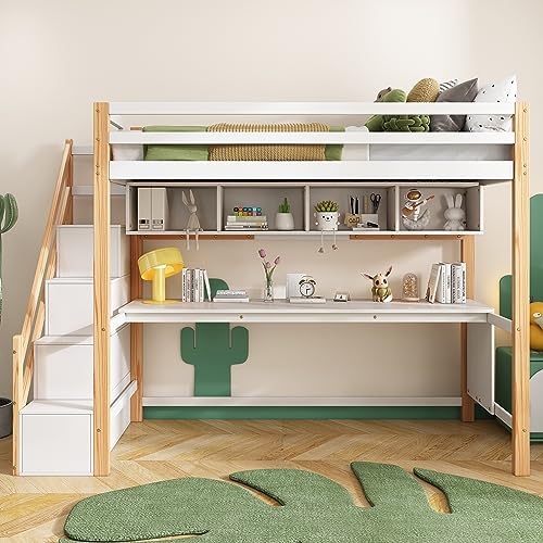 KOMHTOM Lit Mezzanine Lit Double avec Tiroirs de Rangement e...