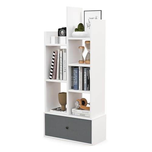 HOMASIS Bibliothèque à 12 étages et 2 tiroirs extensibles -...