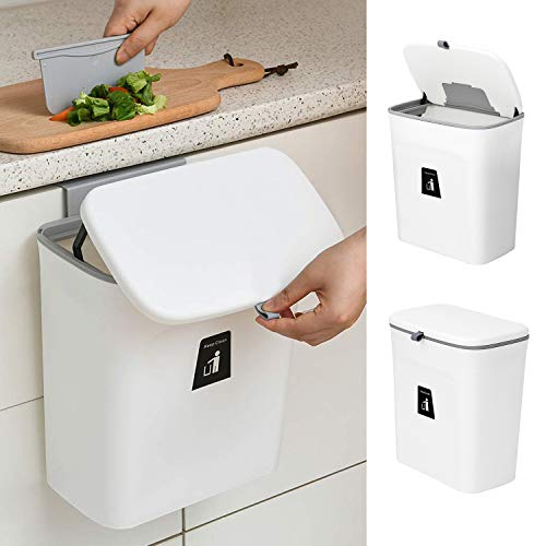Poubelle de cuisine à suspendre avec couvercle pour porte d'...