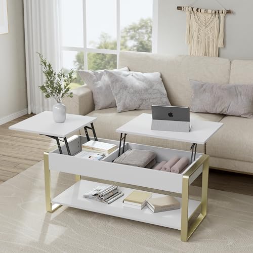 JoliJour Table Basse Relevable, Table de Salon avec Plateau...