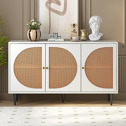 Buffet avec 3 portes en rotin - Armoire de cuisine avec poig...