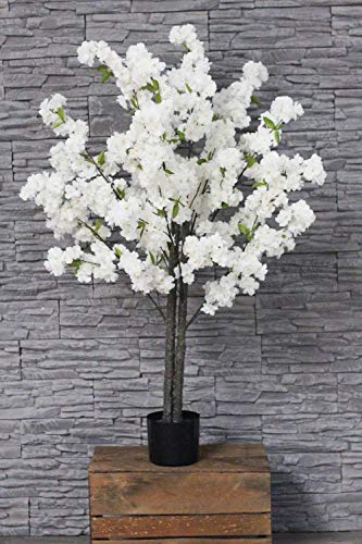 Beau cerisier artificiel en fleurs blanc de 120 cm