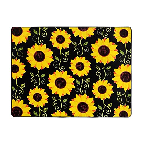 Tapis floral tournesol = > 160 x 114 cm, doux au toucher, av...