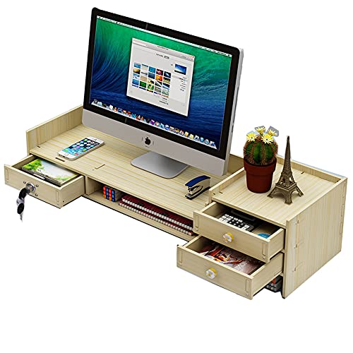 Support moniteur 2 niveaux étagère rangement tiroir verrouil...