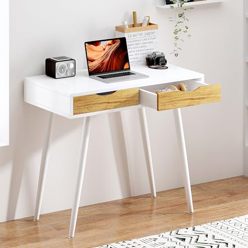 COSTWAY Bureau Blanc, Table d''Ordinateur avec Tiroir et 2 É...