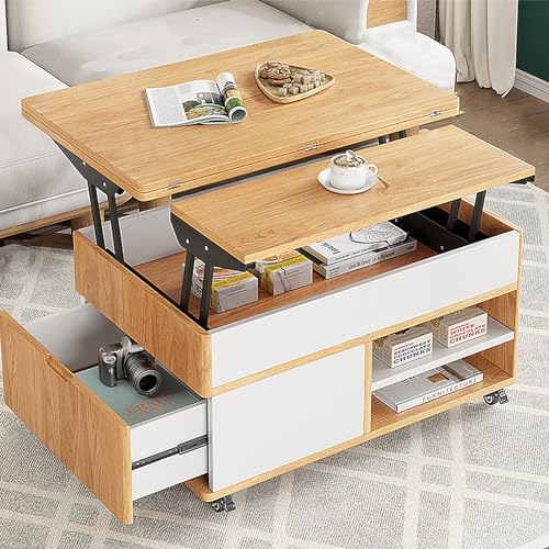 Plateau Relevable Multifonctionnel Table Basse Convertible 3...