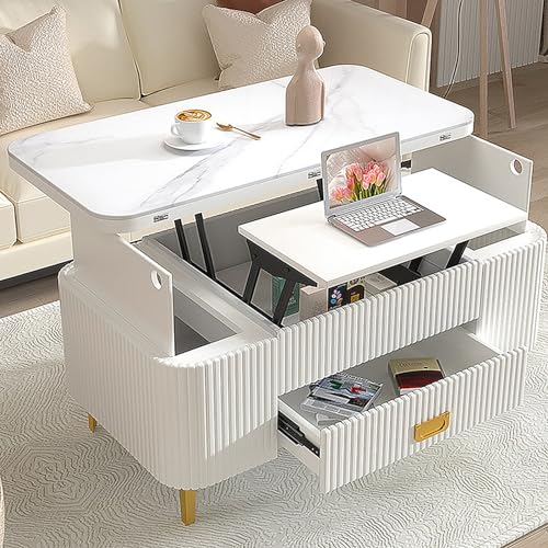 Table Basse Relevable et Convertible en Table à Manger, Marr...