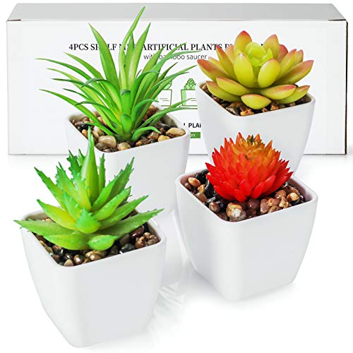 TJ.MOREE Lot de 4 plantes succulentes artificielles vertes d...